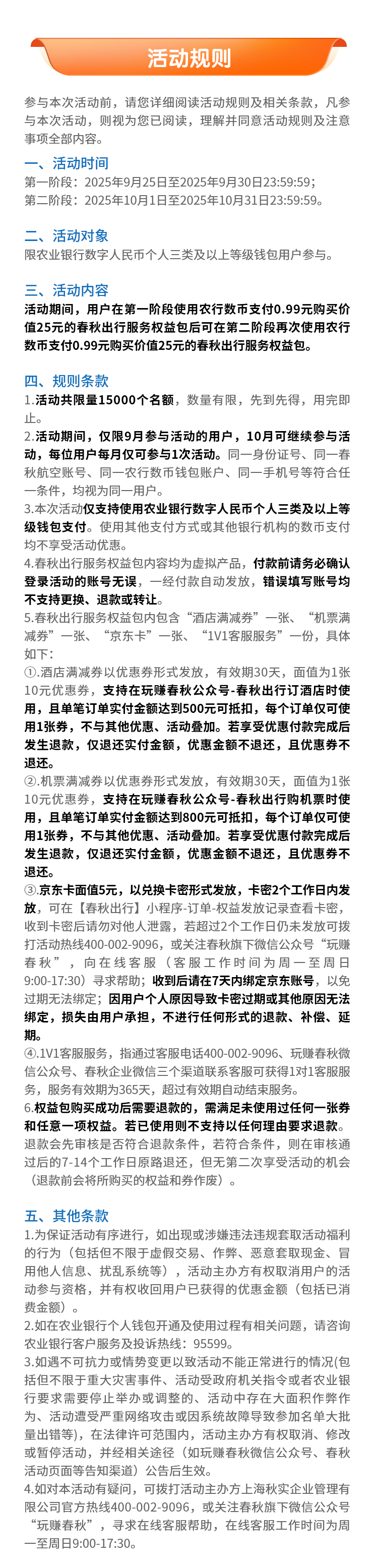 1、客服联系方式:客服热线400-002-9096,或微信号“玩赚春秋”在线客服(服务时间:周一至周日9:00至17:30)