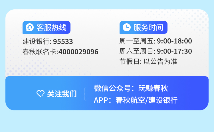 1、客服联系方式:客服热线400-002-9096,或微信号“玩赚春秋”在线客服(服务时间:周一至周日9:00至17:30)